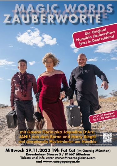 Together with the musicians of the group "HIT THE BEAT" German magic meets the flair of Namibia, reacts to it and creates new perspectives on Namibia, Germany, the world. A master of hypnosis, a world champion of magic and a world traveler inspire your dreams with the knowledge that makes the impossible possible.