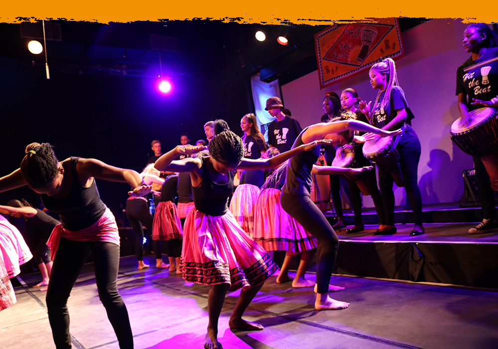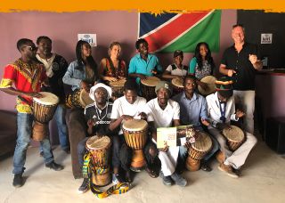 Hit the Beat donates ten djembe drums to the little theatre “Home of the Arts” in Rundu, Namibia – an organisation for unemployed youth. The drums symbolise the common rhythm and the bonds between people. For the youth of the region there was then a two-day drumming workshop and artistic courses.
