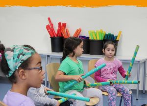 In cooperation with IBIS, Hit the Beat runs a project every year in the Easter holidays: this is a programme for improving proficiency in German in pupils of classes 2 and 3, and our role is to support this learning process with art and music. For instance, we might talk about animals and try and portray them in music.