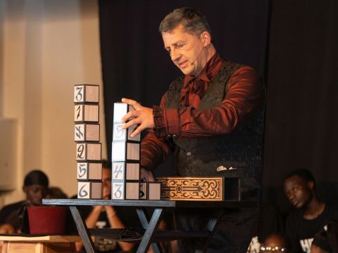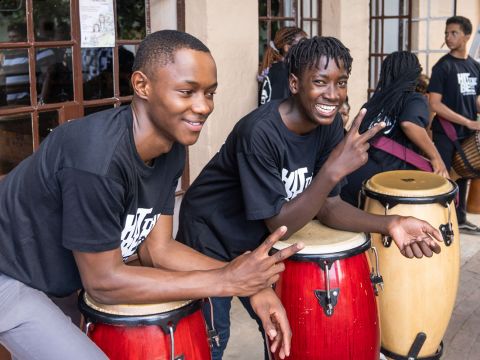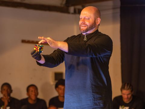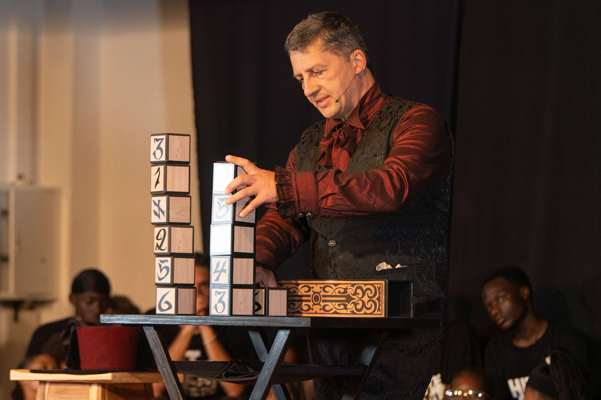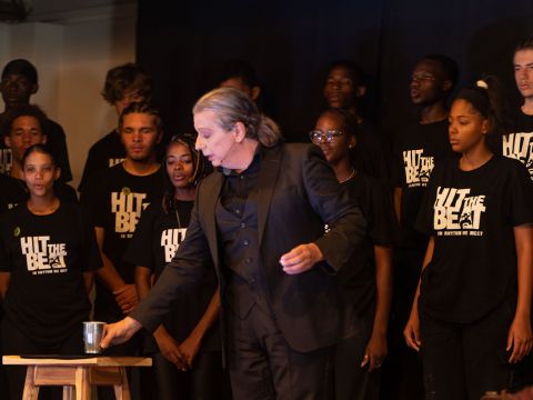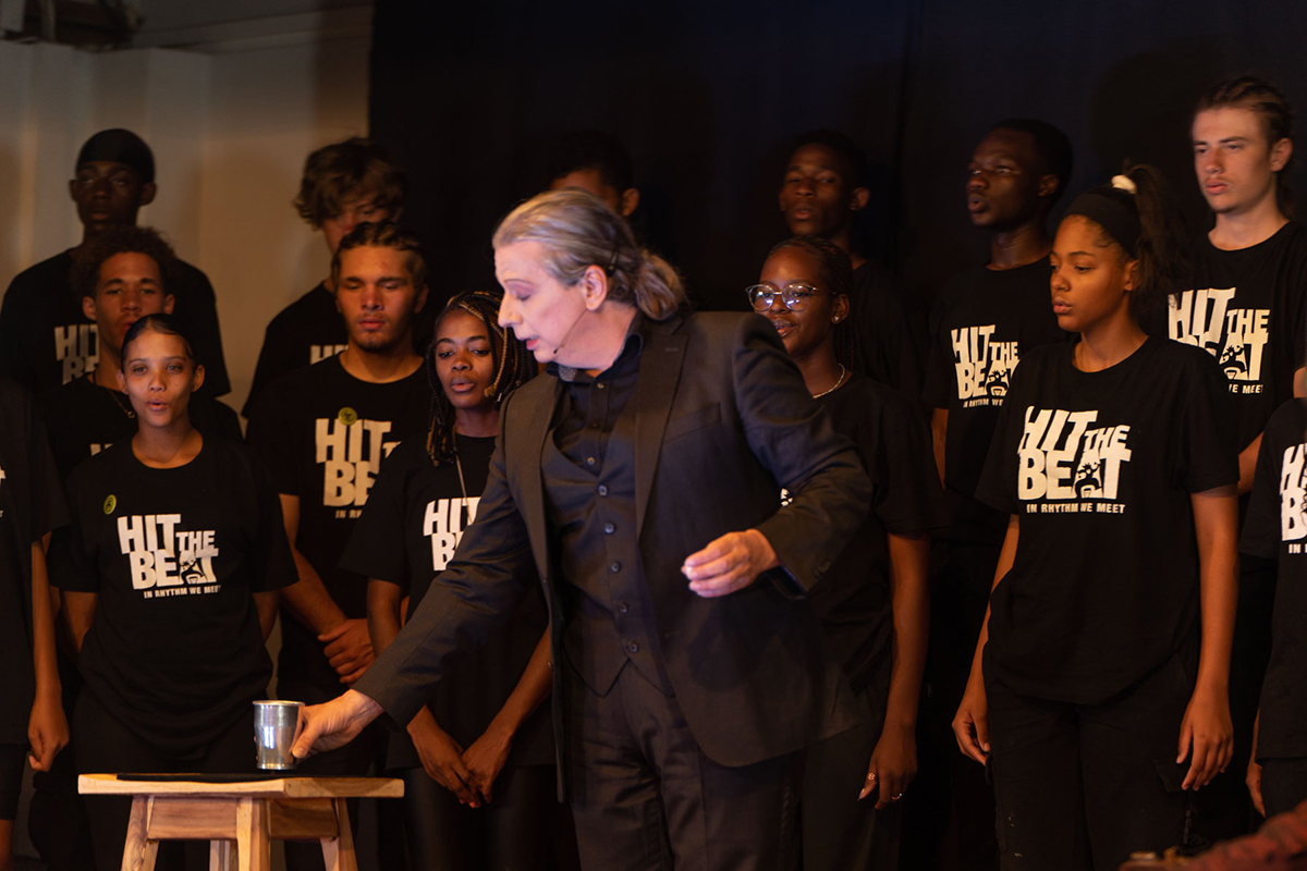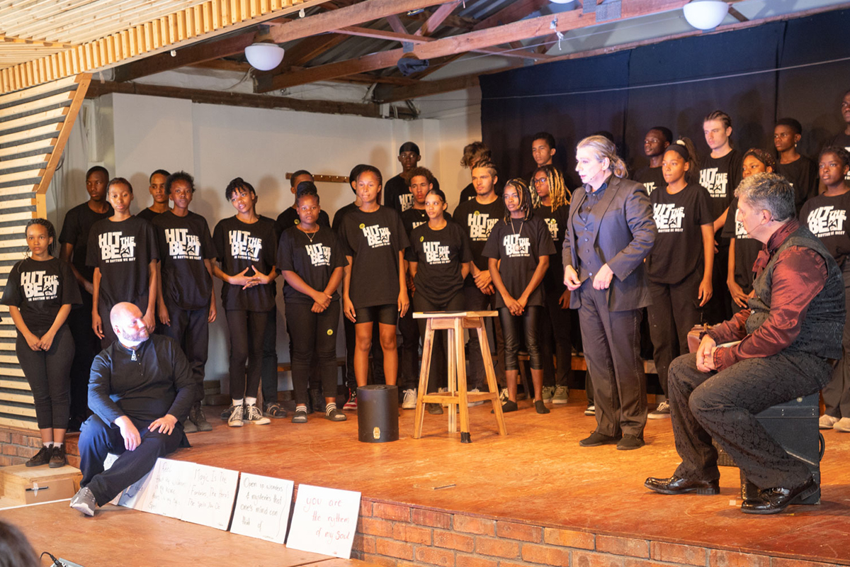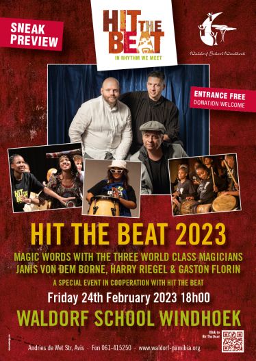 Das führte im März 2023 zu drei Tagen gemeinsamer Proben der 70 Schüler der Waldorf School Windhoek und den „Three Magicians“. Eine großartige Show entstand in denen die Magie der Zauberer mit den Stimmen und Instrumenten von Hit the Beat verwoben wurde.