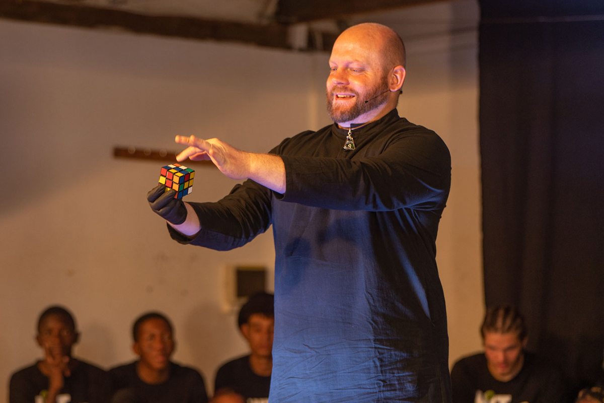 Diese Zauberer hatten die Ideen im März 2023 eine vierwöchige Zaubertournee „Magic Words/Zauberworte“ durch Namibia zu veranstalten.