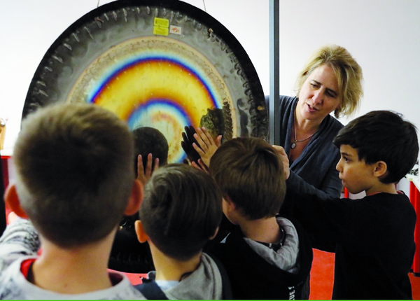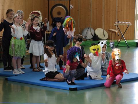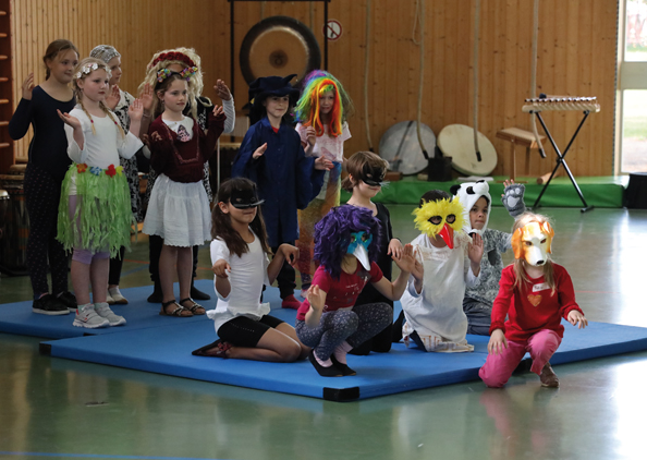 Multiple input (one to three-day) workshop, designed to inspire: In small groups of around 15, young people of various ages try out a variety of musical and artistic offerings. They go through a sequence of creative disciplines and learn some basic skills – running these in parallel means that we can manage 45 participants at the same time.