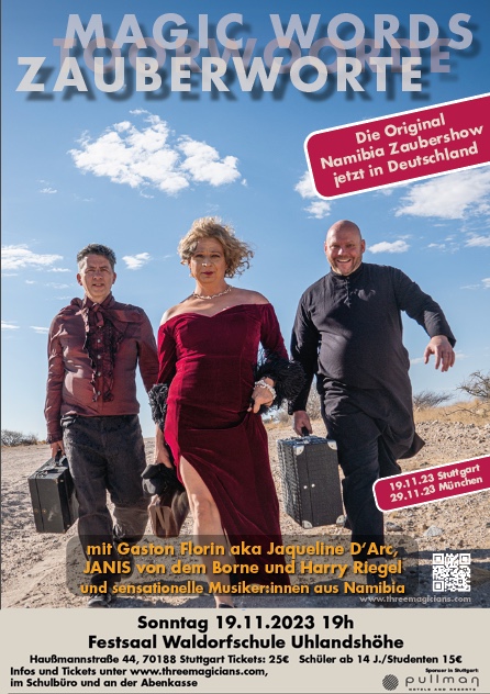 Zusammen mit den Musikern der Gruppe „HIT THE BEAT“ trifft hier deutsche Magie auf das Flair Namibias, reagiert darauf und schafft neue Sichtweisen auf Namibia, Deutschland, die Welt. Ein Meister der Hypnose, ein Weltmeister der Magie und ein Weltreisender beflügeln Ihre Träume mit dem Wissen, welches das Unmögliche möglich macht.